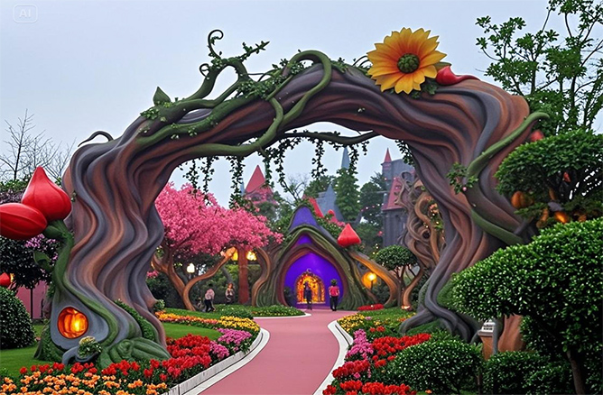 項目描述:仿真樹大門有多種,有寫實(shí)的仿真樹大門、有卡通仿真樹大門,還有不同樹種的仿真樹大門,北京圣園工程可任何形狀的仿真樹大門,如果把思路開闊一下,可以這樣說:有什么樹,就可以有什么樣的仿真樹大門,中國南方和北方的常見樹種有幾百種,還不算稀有樹種,所以制作仿真樹大門時不要局限在現(xiàn)在常做的榕樹仿真大門和古樹仿真大門上。