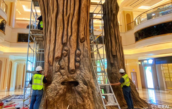 項目描述:湖北恩施漫無寶f 景區(qū)仿真樹大門施工過程,大門采用巨型橫木結(jié)構(gòu),跨度達(dá)到16米,f 格采用高仿真古樹。