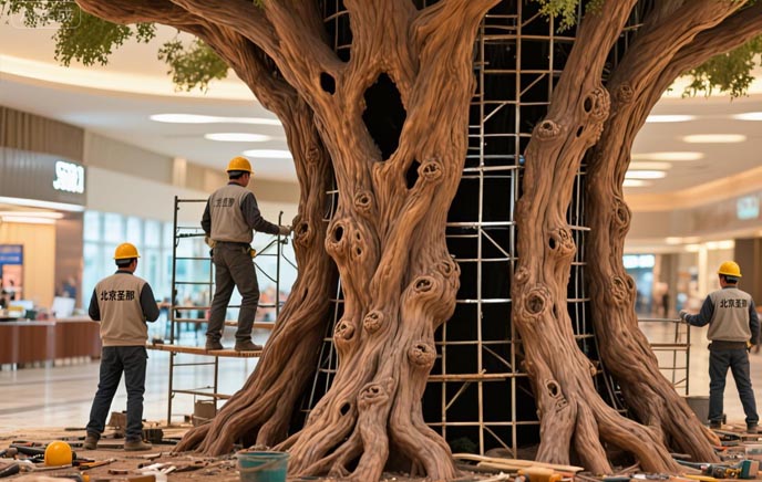 湖北恩施漫無寶f 景區(qū)仿真樹大門施工過程