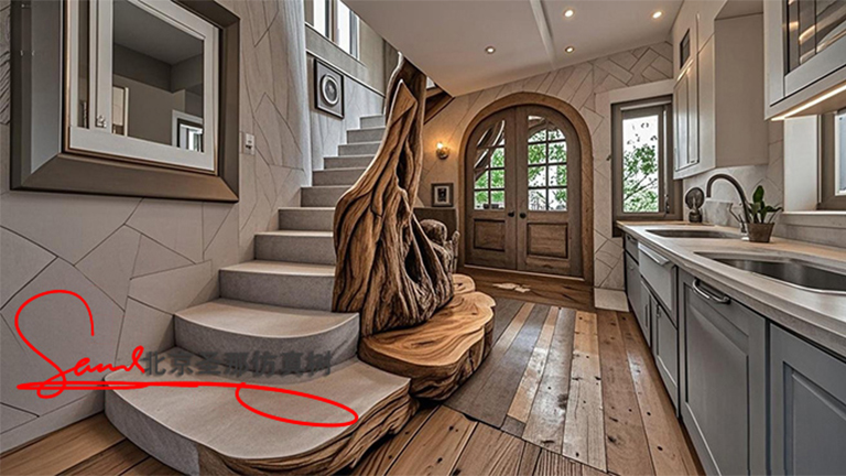 4、綁定金屬網(wǎng)后 ,仿真樹的生產(chǎn)過程進(jìn)入抹灰雕刻階段;抹灰雕塑也是仿真樹的最重要的部分,因?yàn)槎文ɑ彝瓿珊笫窃诒韺拥窨谭抡鏄涞募y理孔洞和樹疤;經(jīng)驗(yàn)不足或者手工差會影響整體美觀度;